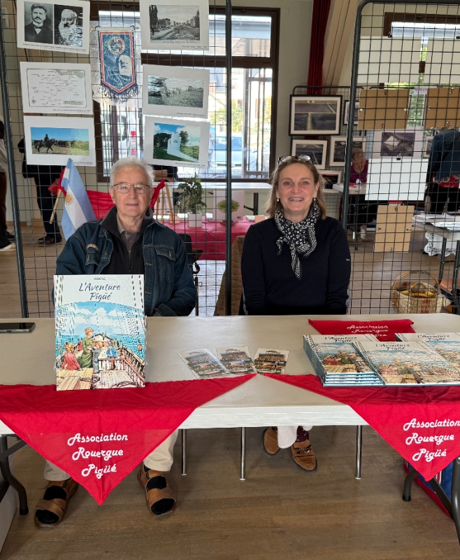 Nathalie Auguy Périé et Jean Andrieu ont brillamment tenu un stand présentant notamment la BD "L'aventure Pigüé".
